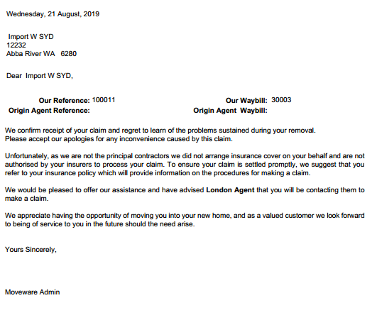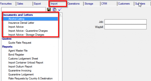 This page describes the standard Moveware reports available in the Import tab of the Reports module, in the Documents & Letters section. These reports can also be run from the quick-print dropdown menu in the Waybills module or the Waybill tab of the Jobs module.