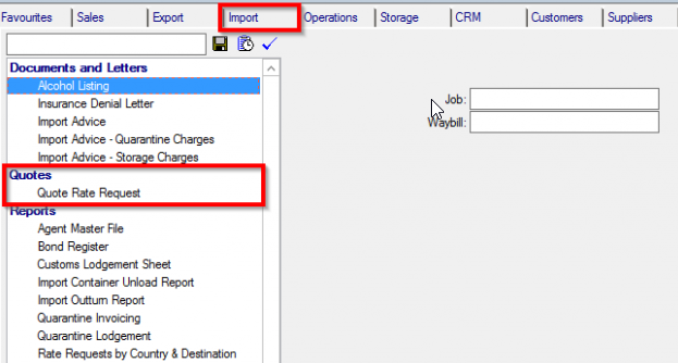 This page describes the standard Moveware reports available in the Import tab of the Reports module, in the Quotes section. These reports can also be run from the quick-print dropdown menu in the Rate Request (Quotes to Agents) module.