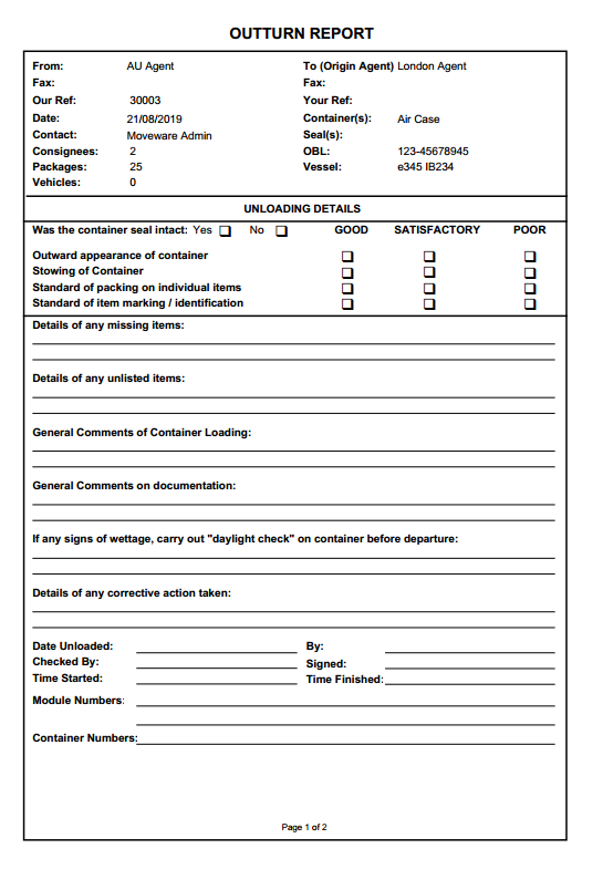 Lists consignments per container in load order. Can be used for noting discrepancies