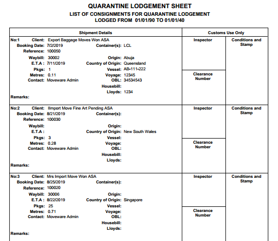 Quarantine Lodgement