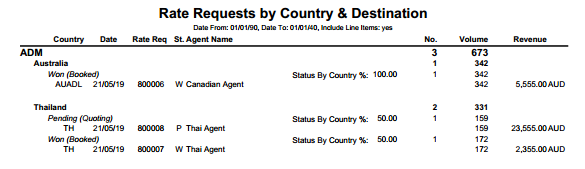 Rates generated from Rate Request system by Country and Destination