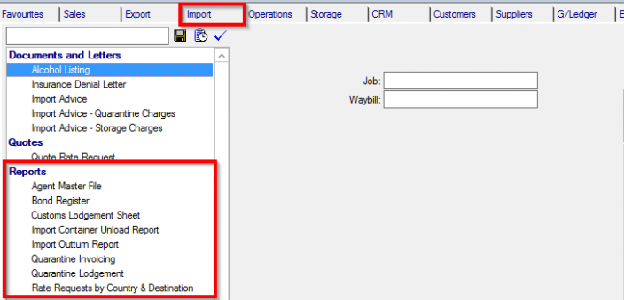 This page describes the standard Moveware reports available in the Import tab of the Reports module, in the Reports section. These reports can also be run from the quick-print dropdown menu in the Rate Request (Quotes to Agents) module.